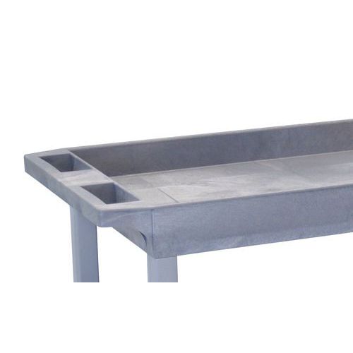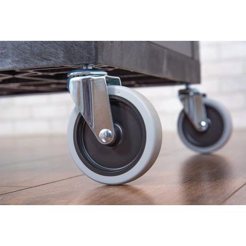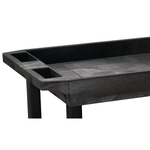 | Descrizione | Carrello in plastica riciclata - 3 ripiani con bordo - Altezza 95 cm - Portata 230 kg |