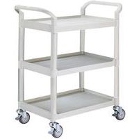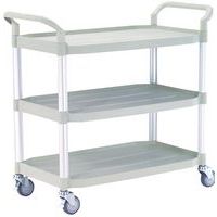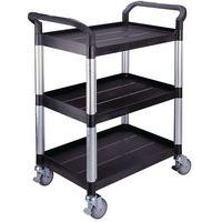Carrello molto pratico, maneggevole dal design moderno. 3 ripiani resistenti con rinforzo in fibra di vetro. Si sposta agevolmente grazie alle rotelle girevoli con cuscinetto a sfere. Portata (kg) : 250 HACCP Montaggio : Da montare