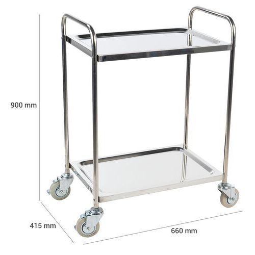 | Descrizione | Carrello inox, Portata: 100 kg, Altezza totale: 900 mm, Larghezza totale: 415 mm, Lunghezza totale: 660 mm |