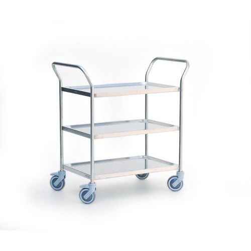 | Descrizione | Carrello inox, Portata: 120 kg, Altezza totale: 1030 mm, Larghezza totale: 850 mm, Lunghezza totale: 500 mm |