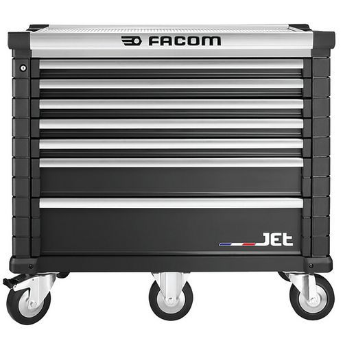 Carrello portattrezzi JetM5 composto da 7 cassetti in grado di contenere fino a 30 moduli e con capacità utile di 255 L.