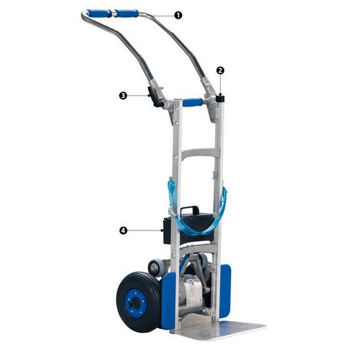 | Descrizione | Carrello motorizzato per scale, Portata: 110 kg, Rivestimento ruota: Pneumatico, Tipo di pala: Ribaltabile |