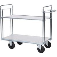 Carrello per carichi pesanti con 2 ripiani, adatto per il trasporto a lunga distanza. Ripiani e maniglie di spinta facilmente regolabili in altezza. Quattro montanti robusti su ciascuna estremità del carrello. Dotato di due rotelle fisse e due rotelle girevoli. Realizzato nell'UE Portata (kg) : 500 kg