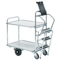 Carrello per preparazione degli ordini con scala - 2 ripiani -Portata 300 kg