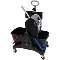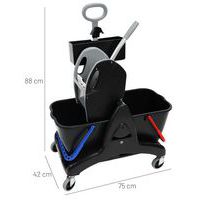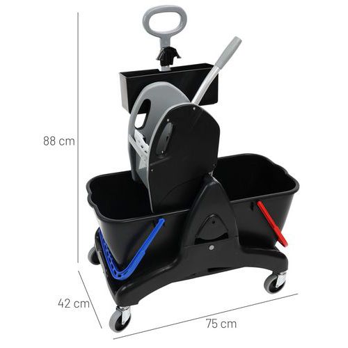 | Descrizione | Carrello per pulizie 2 secchi 15 L con strizzatore + contenitore per prodotti, Capacità: 30 L, Colore: Nero |