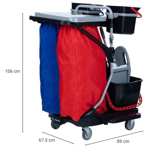 | Descrizione | Carrello per pulizie 2 secchi 4 L con strizzatore e sacchetto plastificato, Capacità: 30 L, Colore: Nero |