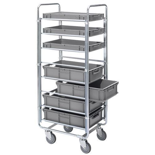 | Descrizione | Carrello portacontenitori, Portata: 200 kg, Altezza totale: 1585 mm, Larghezza totale: 465 mm |