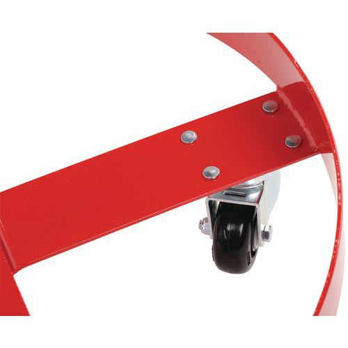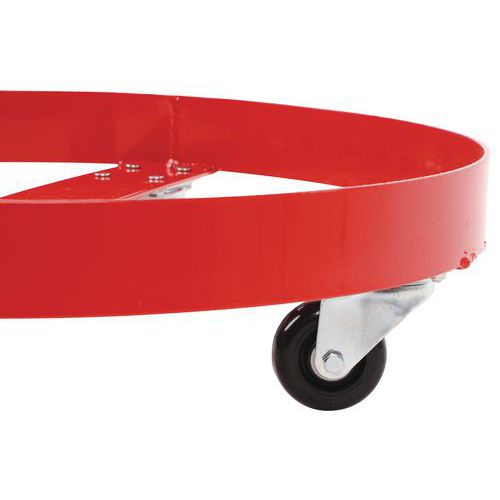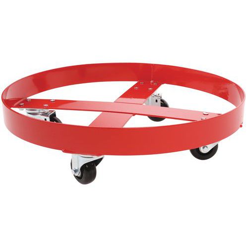 | Descrizione | Carrello portafusti, Portata: 410 kg, Fusto Ø max.: 597 mm, Altezza totale: 150 mm, Rotella Ø: 75 mm |