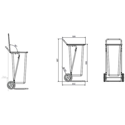 | Descrizione | Carrello reggisacco per raccolta rifiuti, Apertura: Nessuna copertura, Materiale: Metallo, Pattumiera |