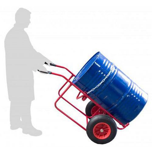 | Descrizione | Carrello a culla per fusti con ruote pneumatiche, Portata: 250 kg, Larghezza totale: 480 mm |