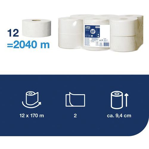 Carta igienica Mini e Maxi Jumbo Tork Advanced, N. di tele: 2, Lunghezza rotolo: 1700 cm, Colore: Bianco Carta igienica Mini e Maxi Jumbo Tork Advanced, N. di tele: 2, Lunghezza rotolo: 1700 cm, Colore: Bianco
