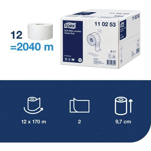 Carta igienica Mini e Maxi Jumbo Tork Premium, N. di tele: 2, Lunghezza rotolo: 1700 cm, Colore: Bianco Carta igienica Mini e Maxi Jumbo Tork Premium, N. di tele: 2, Lunghezza rotolo: 1700 cm, Colore: Bianco