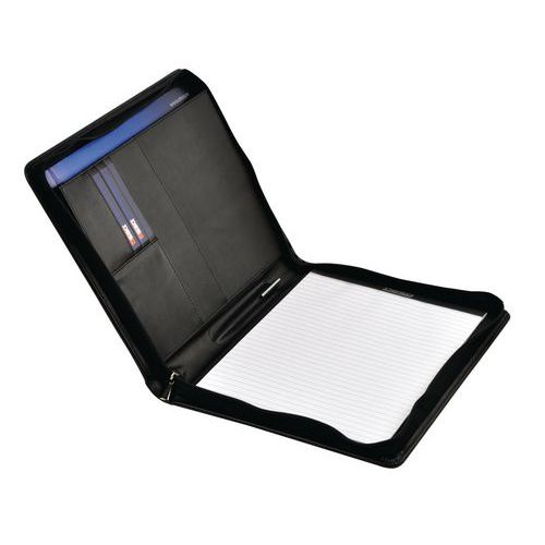 Questo prodotto non sarà disponibile| Descrizione | Cartella portablocco in cuoio A4 con chiusura lampo, Materiale: Pelle, Colore: Nero |