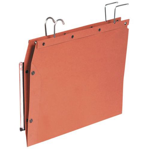 | Descrizione | Cartella sospesa carta kraft con bottoni automatici Tub Ultimate, Fondo forma: V, Colore: Arancione, Fondo |