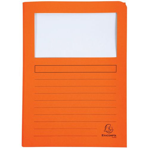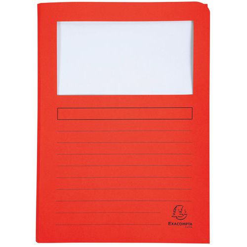 Cartellette con finestrella SUPER 160 g/m² - 22 x 31 cm. La cartelletta con finestrella aiuta a classificare un numero contenuto di documenti quotidiani. I fogli rimangono perfettamente fermi grazie alla saldatura laterale ed è molto semplice inserire i documenti. La finestrella consente di vedere rapidamente il contenuto e le righe stampate aiutano a riconoscere i documenti. Queste cartellette realizzate con nuova carta in fibra da 160 g/m², sono più rigide di quelle standard. Prodotto di ottima qualità progettato per durare a lungo.