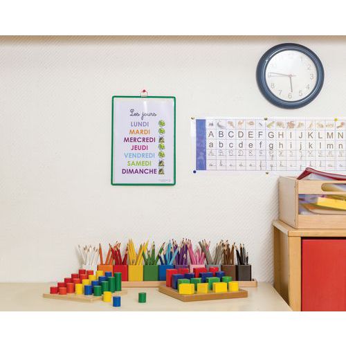 Cartellina per affissione ad aggancio per documenti. Cornice in filo d'acciaio infrangibile Tarifold. Superficie trasparente antiriflesso ed ansa metallica cromata ad alta resistenza. Disponibile in diversi modelli per formati A3 ed A4 e in versione orizzontale o verticale. Per fissaggio a muro. Realizzato in Francia Garanzia Cliente : 10 anni
