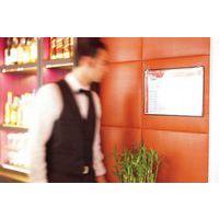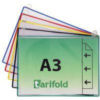 Cartellina per affissione ad aggancio per documenti. Cornice in filo d'acciaio infrangibile Tarifold. Superficie trasparente antiriflesso ed ansa metallica cromata ad alta resistenza. Disponibile in diversi modelli per formati A3 ed A4 e in versione orizzontale o verticale. Per fissaggio a muro.