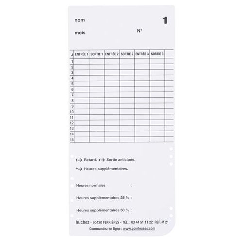 | Descrizione | Cartellino ER1600 e ER2700, Tipo: Scheda da timbrare, Per modello: Marcatempo ER 1500/2500 |