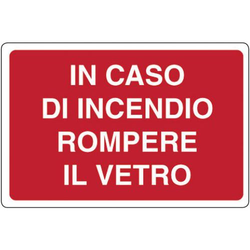 Cartello antincendio - In caso di incendio rompere il vetro
