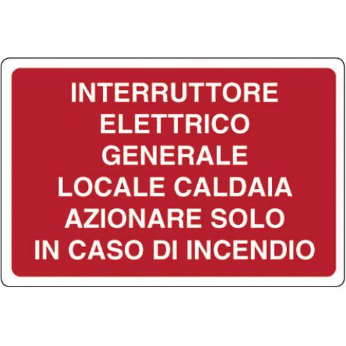 Cartello antincendio - Interruttore generale locale caldaia azionare solo in caso di incendio