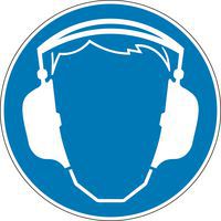 Cartello d'obbligo È obbligatorio l'uso di protezione uditiva, Adesivo: no, Rigido: si, Norma ISO 7010: si