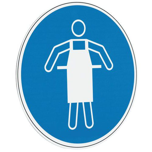 | Descrizione | Cartello di obbligo Grembiule di protezione in alluminio, Adesivo: no, Rigido: si, Norma ISO 7010: si |