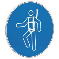 Cartello Imbracatura di sicurezza obbligatoria, Adesivo: no, Rigido: si, Norma ISO 7010: si, Pannello