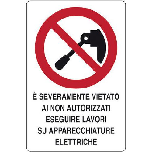 Cartello di divieto - è severamente vietato ai non autorizzati eseguire lavori su apparecchiature elettriche