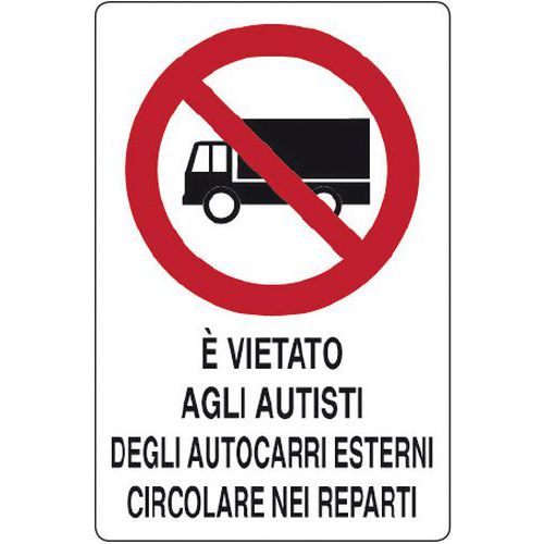 Cartello di divieto - è vietato agli autisti degli autocarri esterni circolare nei reparti