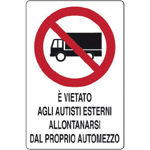 Cartello di divieto - è vietato agli autisti esterni allontanarsi dal proprio automezzo