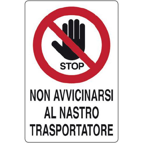 Cartello di divieto - non avvicinarsi al nastro trasportatore