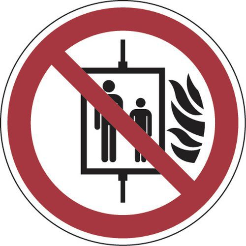 Cartello di divieto - Non usare l'ascensore in caso di incendio - Alluminio - Rotondo