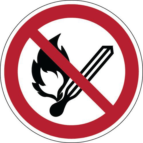 Cartello di divieto rotondo - Divieto di fiamma libera - Rigido