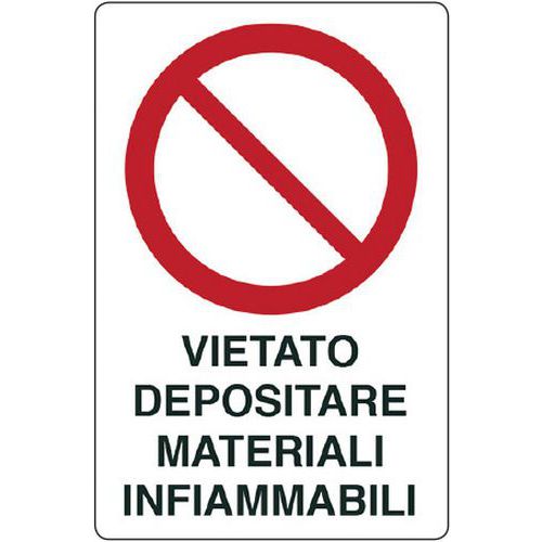Cartello di divieto - vietato depositare materiali infiammabili