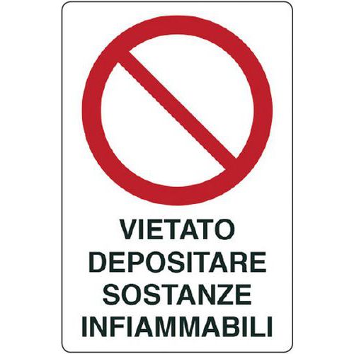 Cartello di divieto - vietato depositare sostanze infiammabili