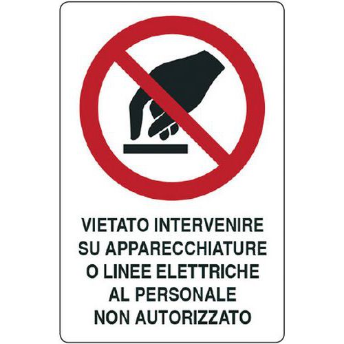 Cartello di divieto - vietato intervenire su apparecchiature o linee elettriche al perosnale non autorizzato