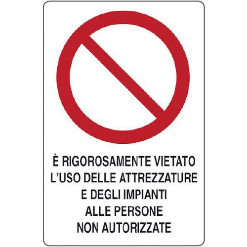 Cartello di divieto - Vietato l'uso delle attrezzature e degli impianti alle persone non autorizzate
