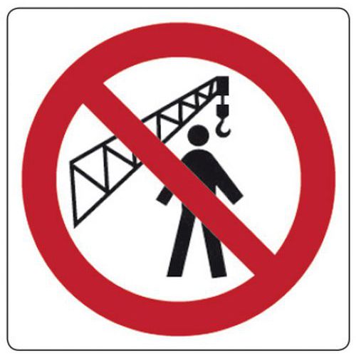 Cartello di divieto - vietato passare nel raggio d'azione della gru