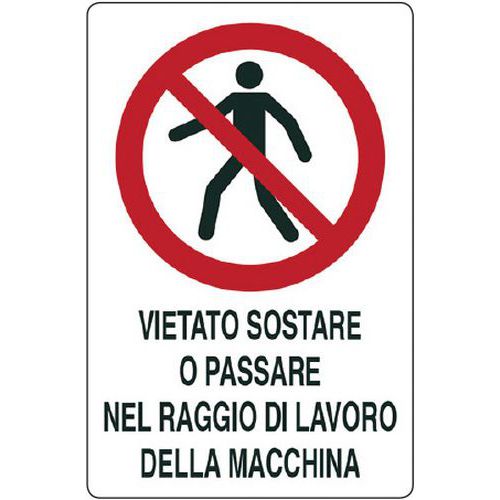 Cartello di divieto - vietato sostare o passare nel raggio di lavoro della macchina
