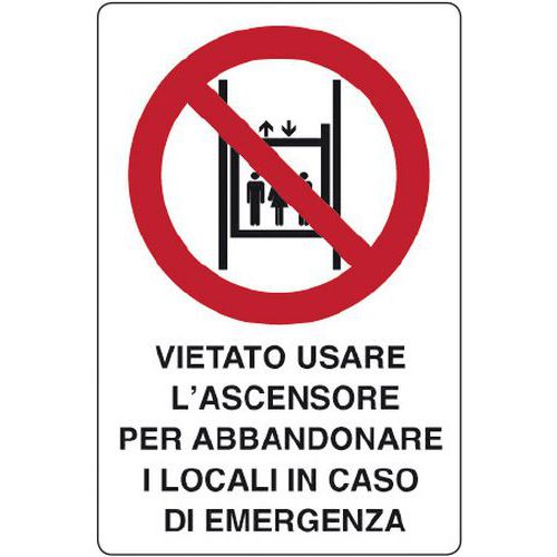 Cartello di divieto - vietato usare l'ascensore per abbandonare i locali in caso di emergenza