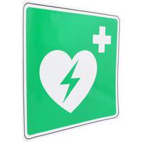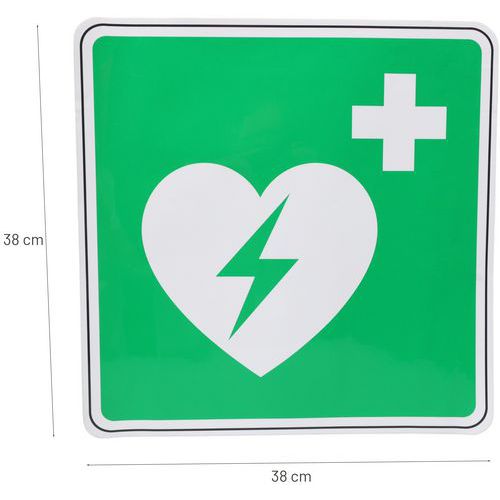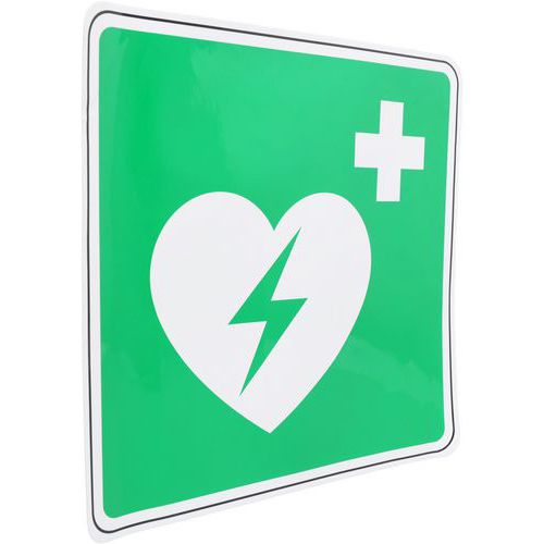 - Con questo cartello di emergenza, facilitate un intervento in tempi ridotti indicando in modo visibile la presenza di un defibrillatore.