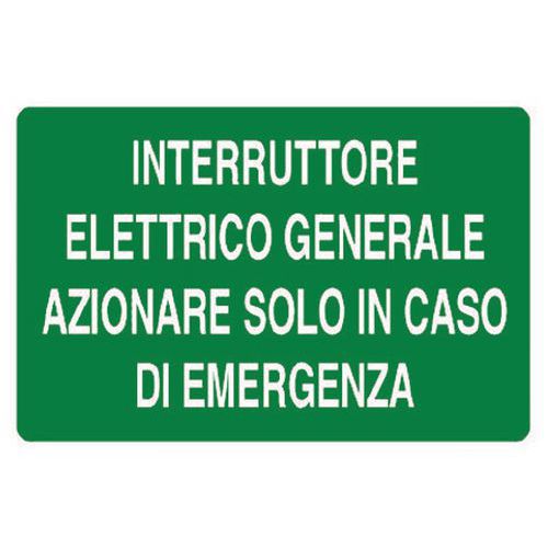 Cartello di emergenza - Interruttore elettrico generale azionare in emergenza