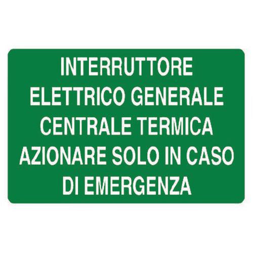 Cartello di emergenza - Interruttore elettrico generale centrale termica