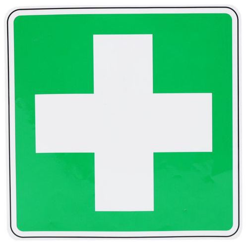 - Pittogramma con il simbolo di primo soccorso che consente di individuare rapidamente le attrezzature di soccorso.