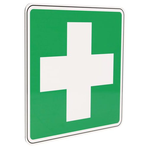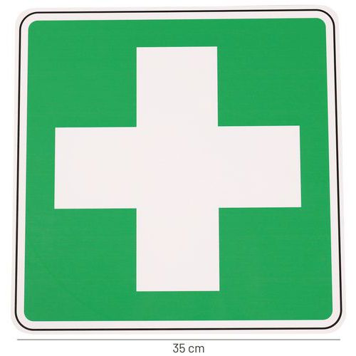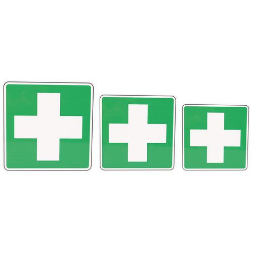 - Pittogramma con il simbolo di primo soccorso che consente di individuare rapidamente le attrezzature di soccorso.