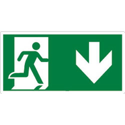 Cartello di emergenza, Messaggio: Uscita di emergenza in basso, Materiale: Alluminio, Altezza: 125 mm