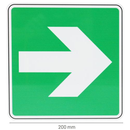 | Descrizione | Cartello di evacuazione Freccia verso destra in alluminio, Adesivo: no, Rigido: si, Pannello, forma: Quadrato |