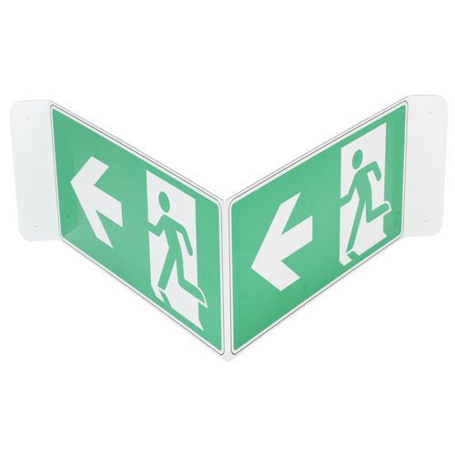 Cartello a V Uscita di sicurezza freccia a destra alluminio - Manutan Expert