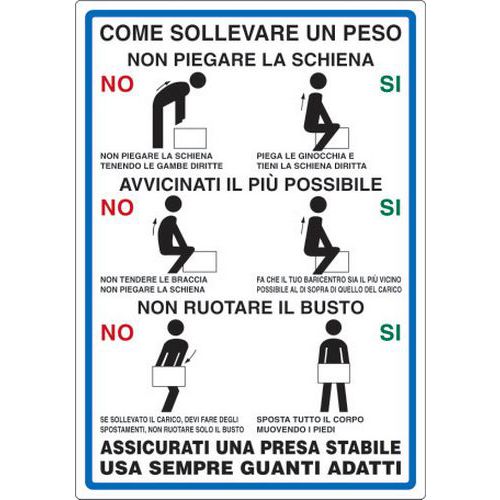 Cartello di indicazione - Come sollevare un peso