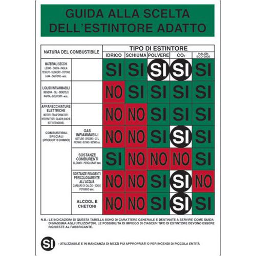 Cartello di indicazione - Guida alla scelta dell'estintore addatto